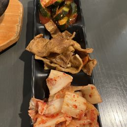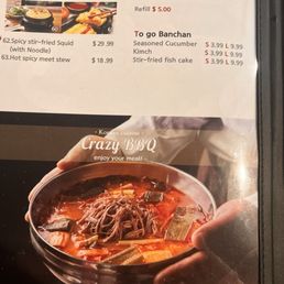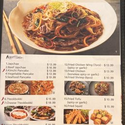 Lovely quiet Ambiance and we came after the lunch rush so we had the restaurant virtually to ourselves. The dining area features 9 tables, the decor is low key dim so you can feel relaxed as you enjoy your meal. The owners are just the nicest people, attentive and quick to answer any menu questions. Today we both had Korean label beer (chilled bottles and the glasses were pulled from the freezer on this 95° day) I've eaten Korean food on many occasions but my lunch friend had never had it. What I noticed about the menu is that not only does it have very good dish photos but they numbered the photos that corresponded to what the menu offered so you kind of have a preview to what to expect which is nice if you are new to this cultures cuisine. To start we had an appetizer that we shared of fried battered shrimp that comes with a tasty sauce for dipping. Banchan dish (complimentary 1st dish then a refill if you need is extra) is placed on the table which consisted of three types one kimchi cabbage, stir fried fish cake and the 3rd was a succulent cucumber Kimchi. All 3 were delicious We ordered number 53, BBQ Pork Galbi served on a cast iron skillet over a bed of white steaming onions. You know how fajitas are served with a steaming hot presentation? This dish is served similar to that Who doesn't love a little dramatic presentation with their meal? I know we did. That was accompanied by a small bowl of white rice. Next we ordered Item 17. Pork Katsu is served with what I believe may have been Japchae Sauce, Savory and Slightly Sweet drizzled then garnished with sesame seeds. The cabbage salad wonderfully topped with a house Mayo based sesame dressing. That dish has a generous portion of white rice as well. I ordered a take away for my husband. It was a bowl item 41 spicy pork rice bowl and that came with its own generous portion of cabbage kimchi. We felt like perhaps they could have been a little more generous with the pork meat since we are comparing it to the portion of pork on our last visit (perhaps it's our faulty memory) we sat and chatted even after our meal was over and finished our drinks never once feeling rushed to get up and go. So our experience here was a home run for Georgia who said she could see herself coming back for another meal. Don't let the outside distract you from what's going on inside the kitchen. The food was hot and the beers were cold . Spent $100.00 before tip but for 3 dishes I'd say not too bad.